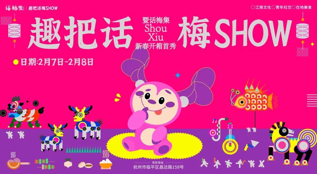 “趣把话梅SHOW”新春开箱首秀活动涵盖六大精彩主题,融合市集、展览、萌宠互动、精彩演出等丰富体验,邀大家共赴一场温暖的新春之约。