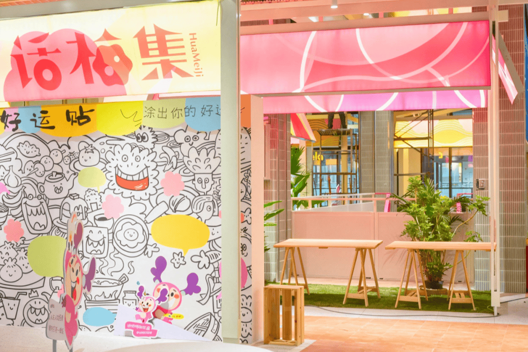 话梅集是一个围绕超山梅花、塘栖古镇等在地元素,聚焦江南文化、在地美食与青年社交的开放式商业街区。街区规划了特色餐饮、娱乐休闲、零售购物、生活服务、艺术文化等不同的功能设置,以 “美食+社交+文化” 三重核心属性填补超山周边生活消费空白。