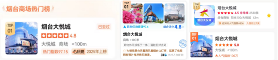 大众点评、美团、抖音、高德等平台显示,烟台大悦城持续占据“商场人气榜”“热门榜”“扫街榜”首位,进一步证实了城市商业地标的引领地位。
