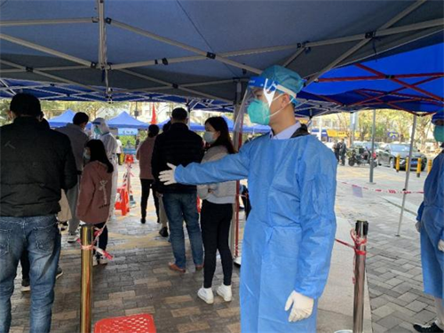 下午14:30在王总忙完手头工作后又与营运同事匆匆忙忙赶往核酸检测点开始新一轮的志愿工作,王总有序的为每一位居民核对核酸码是否正确,营运部员工负责前一站引导居民有序排队进入下一节点,现场工作有序的进行着,下午18:00左右虹湾项目E门口核酸检测到此结束,王总与营运部员工也顺利的完成了下午的志愿工作,感慨道防疫工作者们的不易,在这里我们祝愿全国疫情早日结束,也为每一位防疫工作者点赞加油!