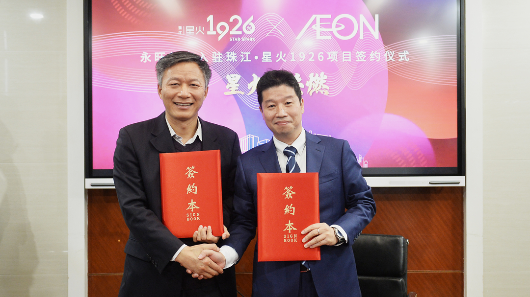 2022年2月25日,主题为“星火·共燃”的永旺超市入驻珠江·星火1926项目签约仪式在广州世界贸易中心大厦举行。珠江商管领导班子、广东永旺高管代表共同出席本次签约仪式。随着珠江商管董事长王友华先生与来自日本京都的广东永旺董事总经理杜若政彦先生落笔成金,签署合作协议,永旺超市正式进驻珠江·星火1926。