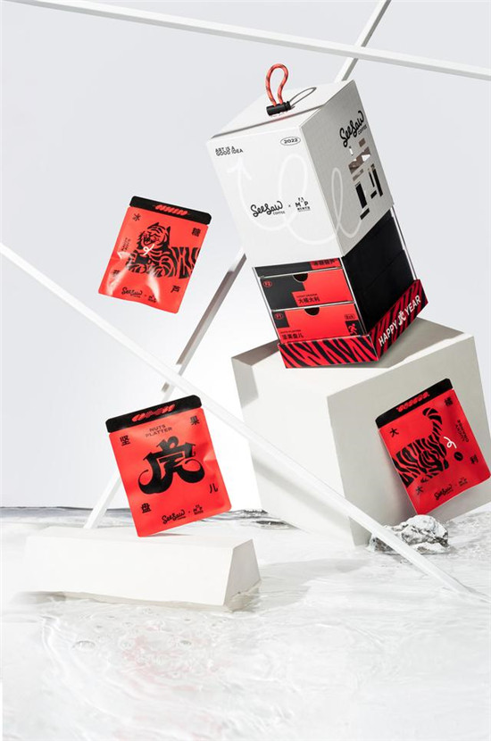 以2022年虎年春年「Seesaw Coffee」与浦东美术馆的合作为例,36氪了解到,这是浦东美术馆首次与品牌跨界合作。双方联手设计了一份咖啡挂耳礼盒,推出“冰糖葫芦”、“大橘大利”、“坚果盘儿”三种挂耳风味,并对老虎元素进行创新。外盒犹如一盏灯笼,采用激光镂空技术,完美复刻浦东美术馆外观,经典的几何形体错落其上,极具艺术气息。内置 LED小灯,取出挂耳,即可作桌面小夜灯之用。礼盒内置的小抽屉,还原了美术馆的三层展厅,每一层内部都是精心挑选的挂耳风味和独家的虎年设计。