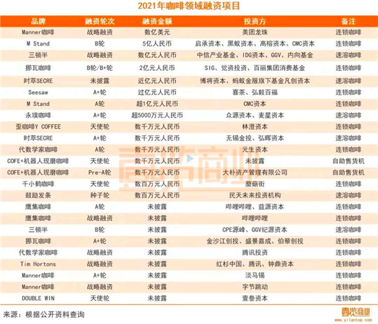 市场之外,还有资本为咖啡赛道加热。2021年,NOWWA挪瓦咖啡、Manner Coffee均拿下过亿融资,M Stand、Tim Hortons中国、时萃SECRE等品牌则在一年内连续获得多轮融资。