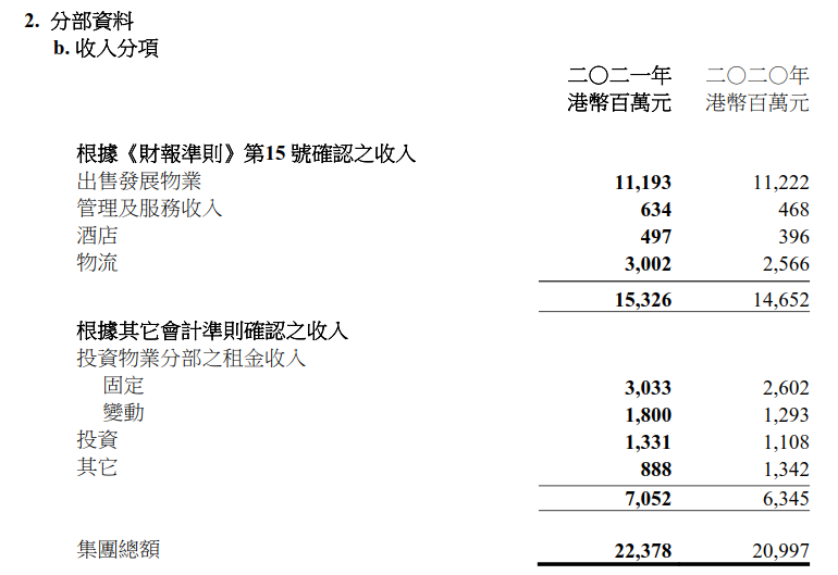 其它方面,物流收入增加17%至港币30.02亿元(2020年:港币25.66亿元),营业盈利增加55%至港币7.71亿元(2020年:港币4.97亿元),主要因为现代货箱码头在内地处理的货柜吞吐量增加及录得较高的加时存仓收入。