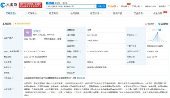 值得一提的是,天眼查信息显示,3月9日,京东五星电器(曲靖)集团有限公司成立,法定代表人为张琼兰,注册资本100万元人民币,公司经营范围包含:再生资源回收(除生产性废旧金属);家用电器安装服务;日用电器修理;会议及展览服务;企业形象策划等。股权穿透图显示,京东五星电器(曲靖)集团有限公司由京东五星电器集团有限公司100%控股。