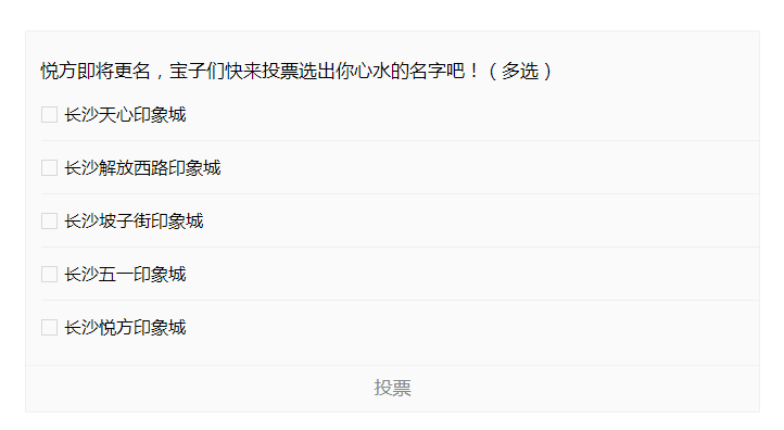 铱星云商从文章中观察到,长沙悦方ID MALL的备选名称包含长沙天心印象城、长沙解放西路印象城、长沙坡子街印象城、长沙五一印象城、长沙悦方印象城,无疑项目后期确定将更名为“印象城”,或将成为湖南首座印象城。