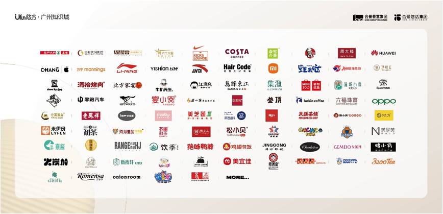 广州知识城悠方依据客群多样化需求,精心规划业态组合,目前已引入超70%城市及区域级首进品牌并签约多个优质品牌,包括嘉荣超市、中影大扬影城、星聚会KTV、六个大厨、NIKE KICKS LOUNGE、COSTA、奈雪的茶、KFC、周大福、HUAWEI华为、畅航苹果、万宁mannings、LI-NING李宁、芭曲造型Hair Code、蛙来哒、store by .jpg及酒拾烤肉等,涵盖餐饮、零售、生活配套、儿童及休闲娱乐等业态,将极大地提升所在商圈的消费层级,带动区域经济活力。