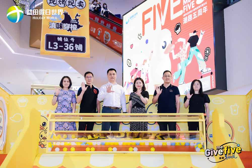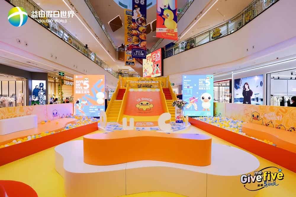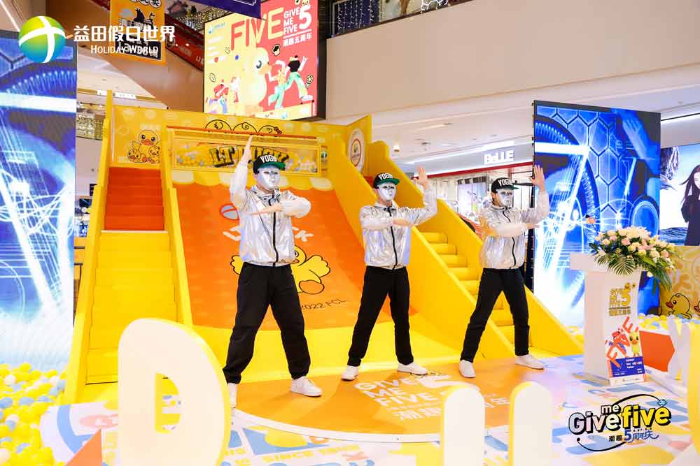 4月29日晚,益田假日世界与LT DUCK联手举办的“5周年庆典暨LT DUCK开园仪式”圆满结束!伴随着现场倒计时声,嘉宾们按下推杆,上千个波波球从滑梯上倾斜而下,场面壮观,引发围观顾客尖叫,这也标志着益田假日世界“give me five”潮趣5周年店庆狂欢正式开始!晚会启幕仪式后,还有5层高的LT DUCK庆生蛋糕派送、海洋球乐园免费开园畅玩的互动环节,这极大吸引了小朋友们的注意力,纷纷拉着家长排队参与。这个五一假期,益田假日世界再次给坪山人民带来狂欢惊喜!