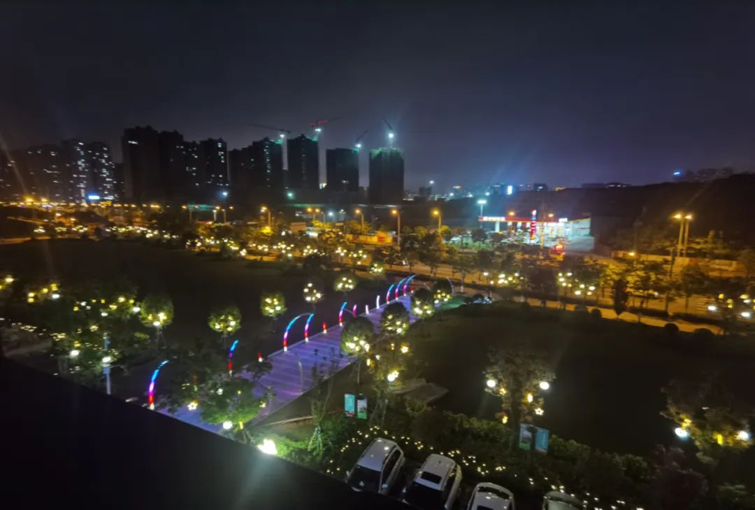 贵阳观山湖碧乐时光超大户外草坪夜景氛围。