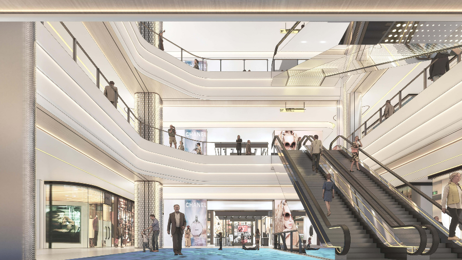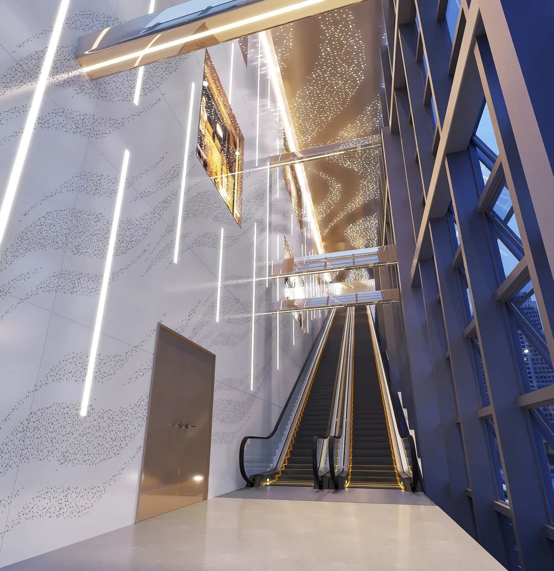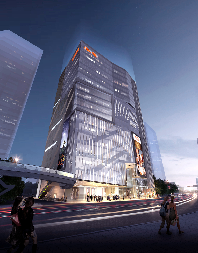 现代时尚的外立面及凹凸造型,表现了商场无限的活力之外,也拉近了高层商厦内与外的联系。