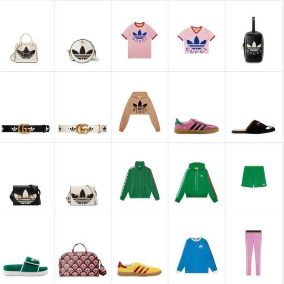 事实上,除了该款雨伞,本次的adidas x Gucci 将运动与时尚进行结合,带来了一系列多达234件产品的联名合作,从公布的型录来看整体风格更偏向复古,设计方面的大部分单品都使用了双方的经典元素为主,三叶草与Gucci的标志也以各种形式出现在联名单品之中,并且色彩感也非常丰富。