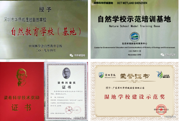 华侨城湿地“保护+教育”的模式也深得多方肯定,先后获“国家级滨海湿地修复示范项目”、“中国人居环境范例奖”、“自然学校示范培训基地”、“梁希科普奖”、“湿地学校建设示范奖”等嘉奖。