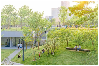 南海公园是一座以星空为灵感的市政公园,提取了星空柔美的曲线、蓝绿的色调及璀璨的繁星作为设计元素融合于一体。南海公园拥有跑道、篮球场、网球场等休闲运动场地,正好迎合了都市人群在这里休闲游玩、运动娱乐的需求。南海公园同时也是白领新贵的灵感乐园,为他们提供了一处闹市中的静谧之地,可以在繁忙的工作间隙稍作小憩、缓解疲惫,治愈烦躁的心情。