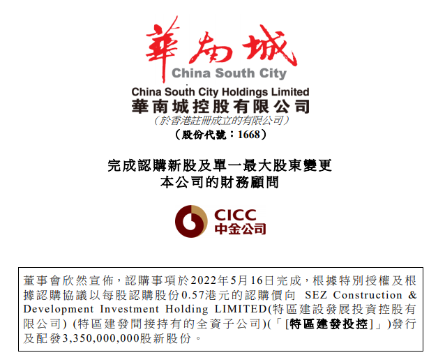 昨日(5月16日),华南城控股有限公司(股票代码:1168.HK)发布公告称,华南城已经收到特区建发控股支付的认购金19.1亿港元。与此同时,根据协议,华南城将向特区建发控股以每股0.57港元的认购价格配发33.5亿股新股。完成认购后,特区建发成为主要股东及单一最大股东。