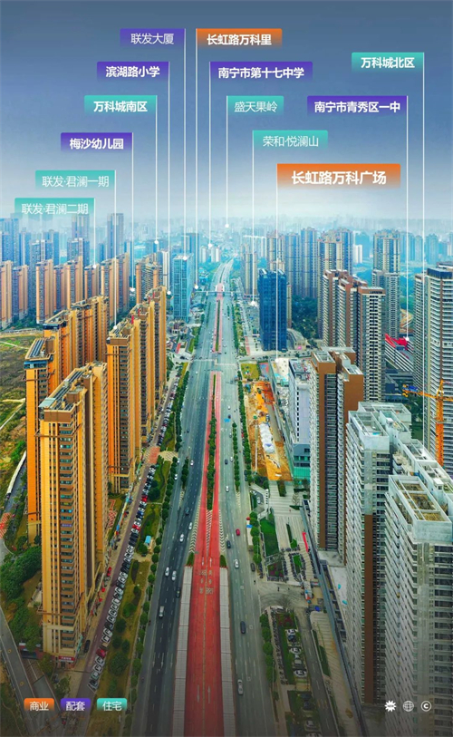 以长虹路万科广场、长虹路万科里两大商业体构成南宁东商业聚集度最高、总体量最大的商业集群,形成区域消费的主力供应点,亦是凤岭北商业的闪亮名片。