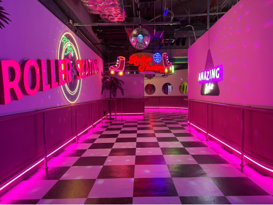 兼具沉浸式梦幻蒸汽风和复古元素的“霓虹轮滑区“深受欢迎,让人恍如穿越至80年代。轮滑已经消失在大众视野若干年,夜管家团队用独特的设计使这项运动焕发新机。