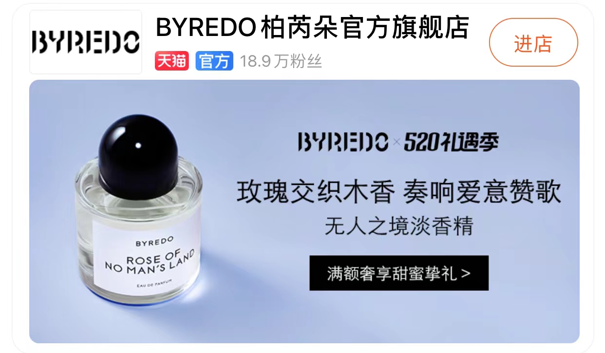 Byredo也进驻到中国美妆零售集合店“HARMAY話梅”,2021年正式开设天猫旗舰店,其中文名放弃了消费者熟称的“百瑞德”,而选用了“柏芮朵”。