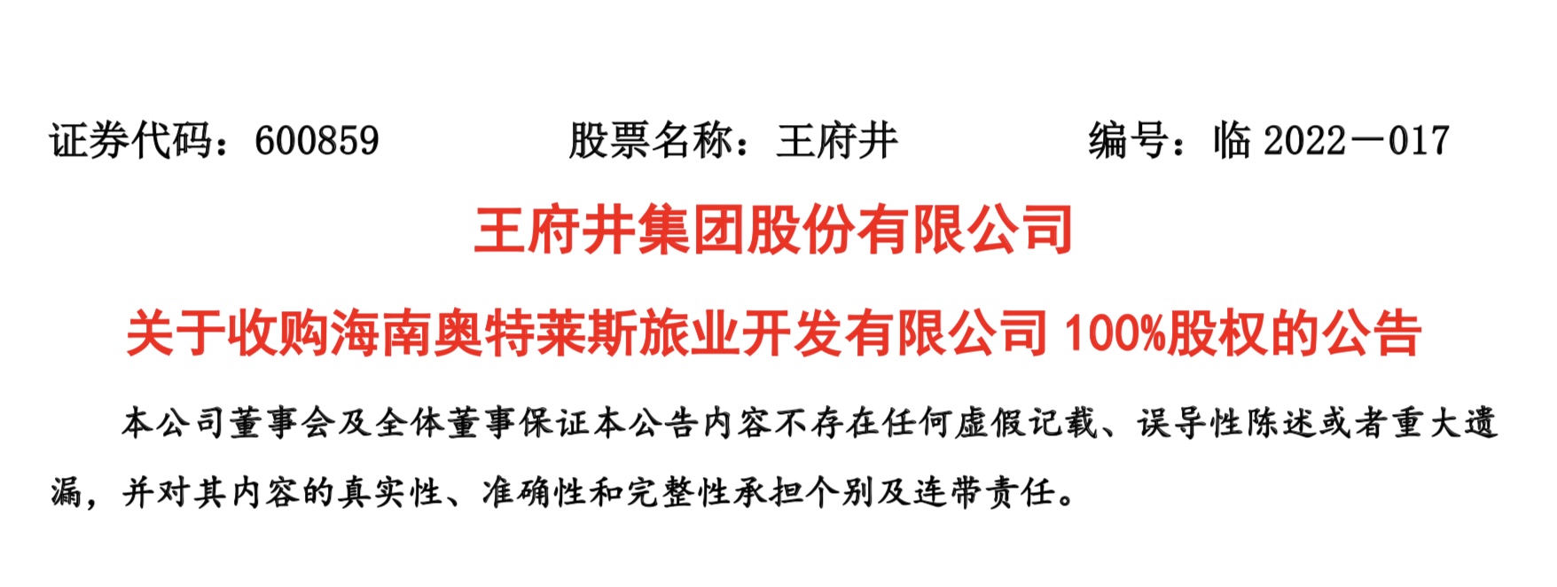 王府井收购海南奥特莱斯旅业100%股权,将打造海南最大奥莱购物中心