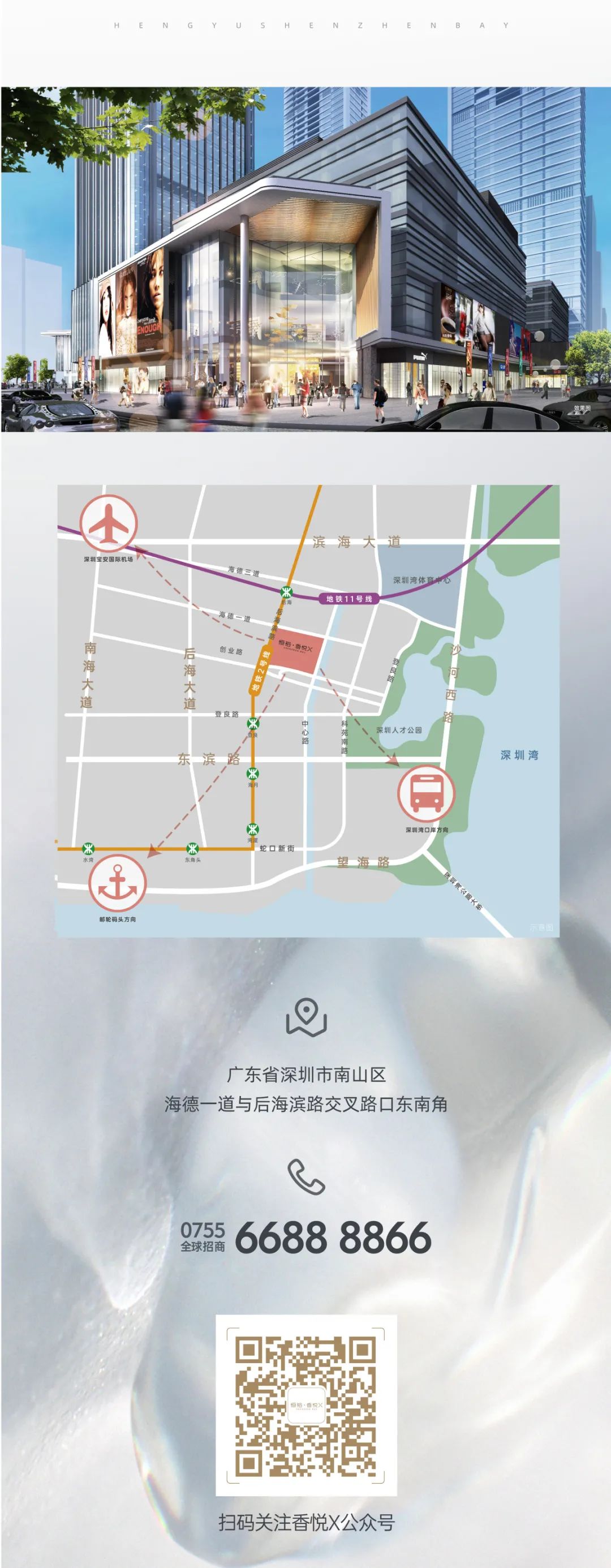 作为未来国际一流商圈的重要组成部分,恒裕·香悦X洞悉时尚消费新趋势,以“新奢、潮尚”为定位要素,以“立体城市秀场”为商业空间构想,打造集高端消费目的地和地标商业于一体的深圳湾新奢潮尚地标。这里不仅汇集了时尚与艺术的无界空间,更是给新世代消费群体提供了一个对话生活、交流情感的社交场所。