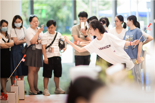 温度上升的人间六月,也是热情高涨的火辣一夏,长沙世茂环球金融中心巧妙将绿色可持续发展理念,融入到端午节的传统,通过古代传统投壶与现代垃圾分类相结合在与项目白领及消费者互动中科普垃圾分类,传播节能环保知识,环保又有趣。同时,手工爱好者还可在现场进行香囊DIY,消费可领取香蒲花束,带动现场人群一起祈福端午安康,在浓厚的节日氛围中趣味过端午。