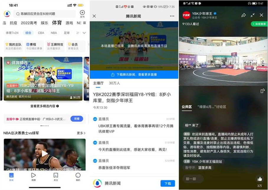 除了激烈的现场比拼,本次赛事还在“腾讯新闻-体育栏目”直播平台及“YBK少年球王”微信视频号上开启全程赛事直播,让没能抵达现场的观众,也可以在线上尽情观看。其中“腾讯新闻-体育栏目”直播间配备了专业赛事解说人员现场解说赛事,大大增加了互动性,提高了直播的可观看性。整场直播,“腾讯新闻-体育栏目”最高观看量达30.2万人次,YBK少年球王视频号最高观看量达1.4万人次,最高点赞量达3.8万。