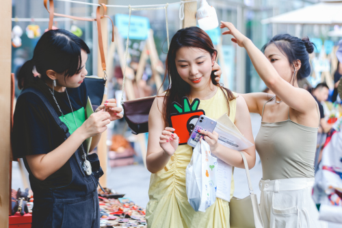 草莓TOWN市集是峡谷音乐派对中另一处宝藏游逛地。火遍川渝的20家网红店铺集结峡谷,吸引了众多消费者停留驻足。