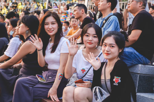 现场人潮汹涌,声光夺目,乐迷们跟随音乐的节奏尽情舞动。