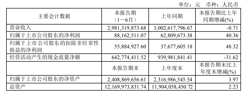 银座股份2022上半年实现营收29.81亿元,净利润增长40.36%至8816.25万元
