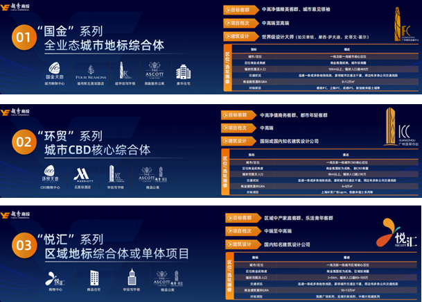 在品牌定位上,“国金”系列将打造为「全业态城市地标综合体」,“环贸”系列为「城市CBD核心综合体」,“悦汇”系列则为「区域地标综合体或单体项目」。