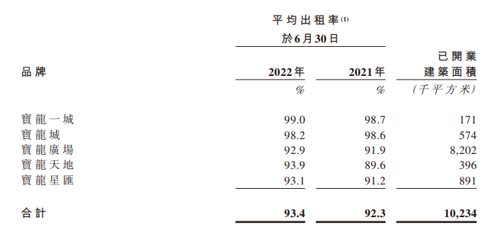 整理自宝龙商业2022中期报告