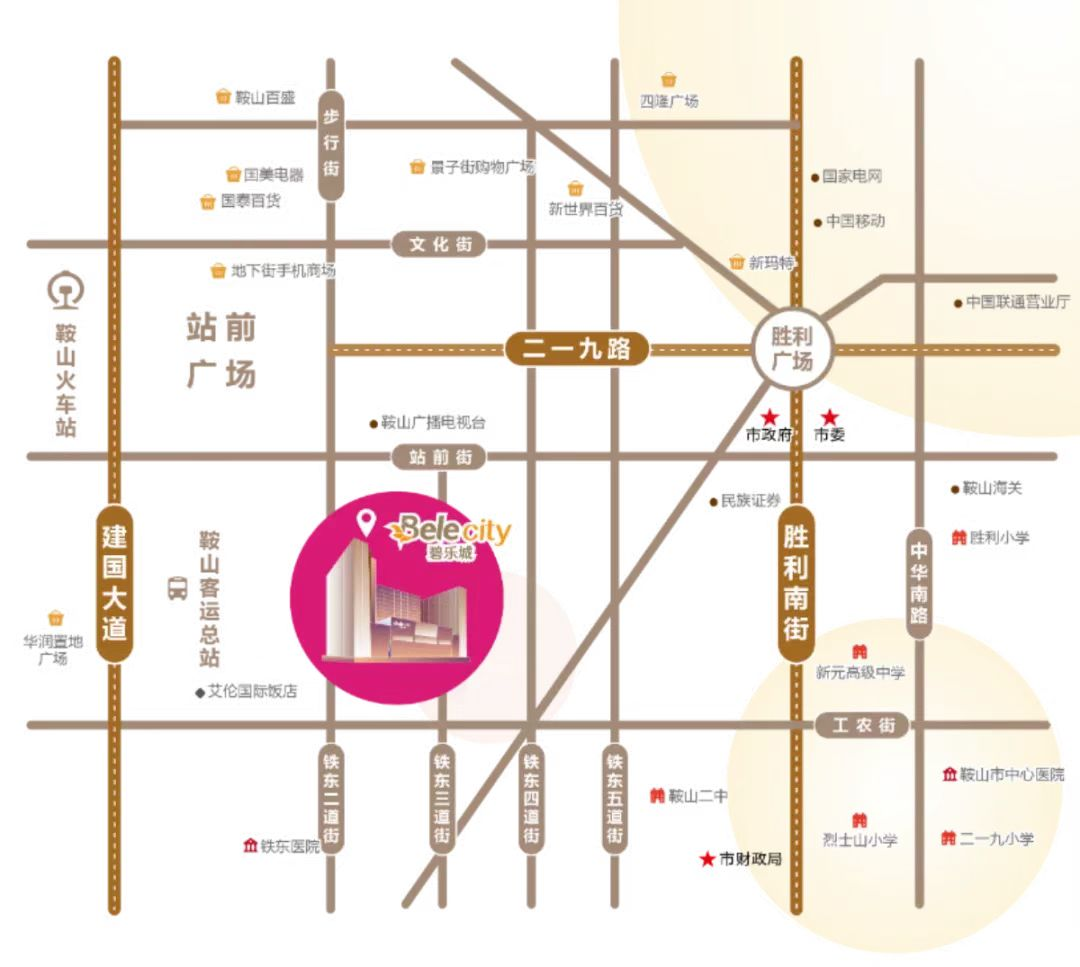 在鞍山,提到城市核心,人人都知道就是碧乐城所在的站前商圈。这里是鞍山政治、经济、文化中心,也是鞍山唯一城市级核心商业区。直线距离鞍山市政府仅300米,步行至火车站仅需5分钟,门前31条公交线路流通,连接铁东、铁西、立山、高新四大主城区。