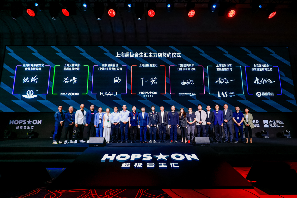 2022年9月13日,“HOPS★ON 超极合生汇”品牌正式亮相,于上海浦东陆家嘴上海中心举办了隆重的品牌发布会暨上海超极合生汇主力店签约仪式。超竞集团董事长朱一航、超竞集团联合创始人兼CEO&EDG电子竞技俱乐部总裁吴历华、珠江投资集团副总裁张国强、合生&珠江华东区域董事长兼总经理沈宇嵩、合生商业集团华中区总经理暨泛文娱体育产品线负责人邓汝舜、合生商业酒店公寓事业部总经理张少伟、合生创展上海地区公司副总经理谢政、超竞集团常务副总裁袁江竹、超竞集团副总裁陈静、超竞集团副总裁&EDG电子竞技俱乐部总经理潘逸斌、EDG电子竞技俱乐部英雄联盟分部LPL首位大满贯选手Meiko、樽轩集团董事长丁兴才、樽轩集团副董事长丁麟,以及来自超竞集团和合生商业集团的领导、腾讯电竞领导、上海电子竞技协会领导、知名动漫、游戏IP代表、品牌代表、媒体代表等超300名重要嘉宾到场,共同见证HOPS★ON 超极合生汇品牌的新生亮相!