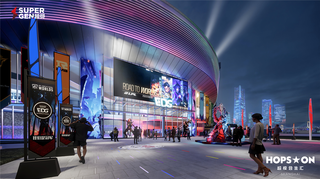 上海超极合生汇设置了全球首个双电竞场馆,主场馆是华东首座国际标准的电竞场馆,面积达15,000㎡,拥有3,000个座位,除了举办电竞职业联赛外,还可承办各类明星演唱会、见面会、综艺晚会等。“EDG合创汽车英雄联盟LPL主场赛馆”面积6,000㎡, 可容纳1,000个座位,未来必将成为全球EDG粉丝的朝圣地,同时也将联合专业演艺公司,打造沉浸式剧场、LIVE HOUSE功能,全年活动无间断!此外,上海超极合生汇项目还拥有上海最大下沉式广场“电竞摇滚观赛区”,巨型的环绕型媒体环作为中心广场的精神堡垒,实时为玩家带来每一个激动人心的游戏时刻。