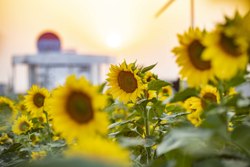 而今年9月向阳花海再次出镜,而且比前两次更加震撼。10000支“国王向日葵”向阳绽放,一片3000㎡的空中花海出现在房山区人们的生活中。到访商场的顾客上至天台后,边沉浸花海,边观赏秋日晚霞,收获了充满治愈的体验,也留下了美丽的城市剪影。