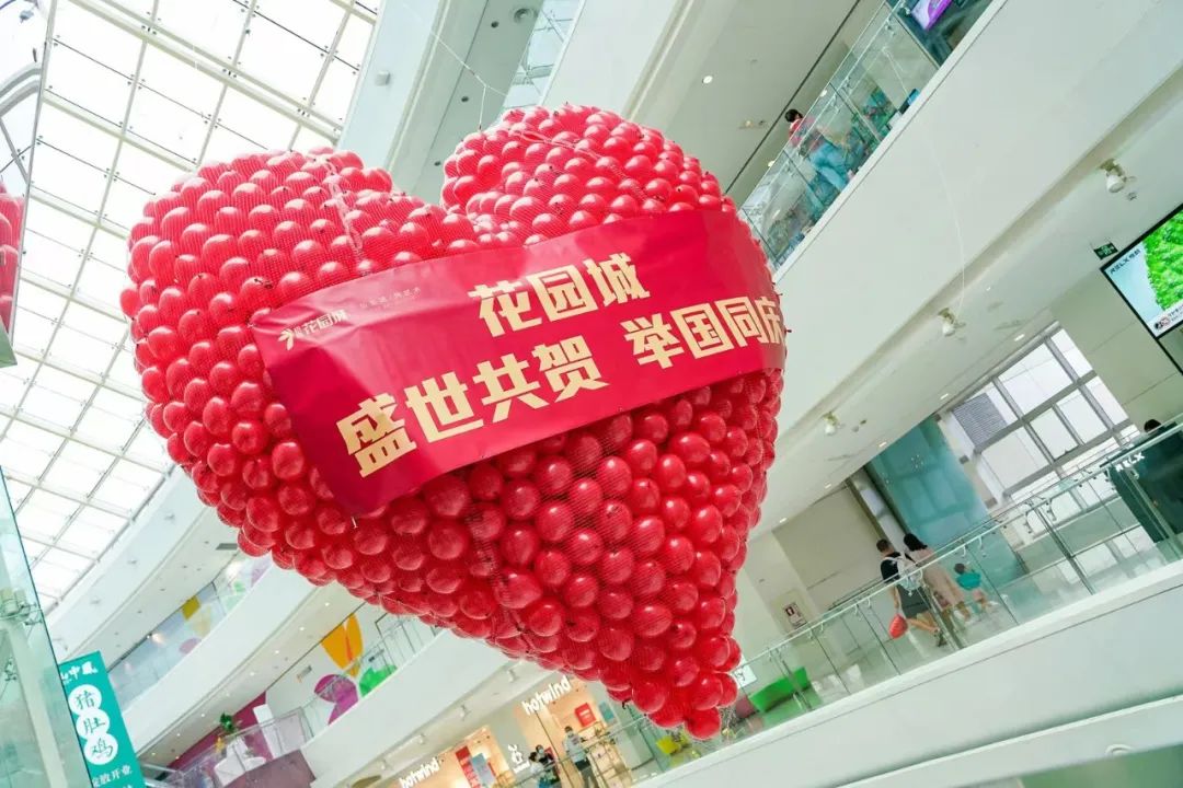 由招商商管倾力打造全国联动营销IP第三届“好趣节”在国庆档狂欢开躁。深圳招商花园城结合今年“集食型乐,噪点有趣”的口号,于9月30日至10月7日推出“摊玩集市”,消费者到场可以享受现场乐队LIVE、川剧变脸、逛淘非遗手作等丰富体验;国庆当天更有爱国气球雨,北区中庭悬挂着由气球组成的巨型爱心,伴随着快闪合唱《我和我的祖国》歌声中,5000个气球从天而降,将假期狂欢的氛围拉升到了顶点。