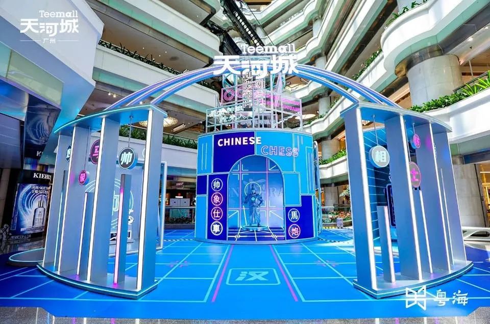十一小长假,广州天河城首次以中国象棋为主题打造的主题展继续上演。该展览将国潮传统元素与现代科技相结合,融合东方美学与西方实验先锋,打造超现实“赛博朋克式中国象棋元宇宙世界”。