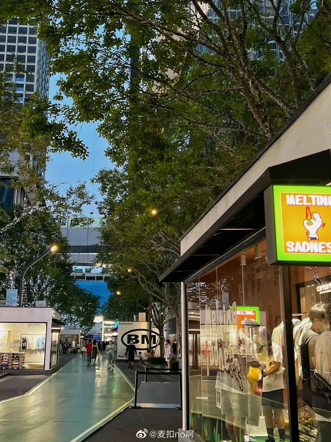 我们在实探中发现,原本两边错落分布双层独栋旗舰店的高街上,出现了一个个代表街头和潮流文化的“透明小盒子”, ATTEMPT、BEAMS、 Badmarket、 BOHRHOO、 HÉLAS、MELTING SADNESS,RANDOMEVENT 等和 MIXTURE pop-up 串联,通过品牌自身场景力的碰撞,激活了街区的潮流氛围。