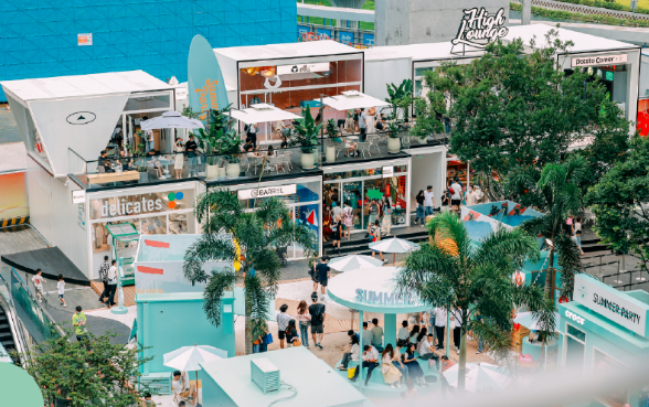 事实上,在MIXTURE诞生之前,万象天地在过去几年一直在探索与品牌的共建。今年夏季,万象天地在街区水广场打造了浪人海滨小镇,并在小镇中构建了双层概念空间——High Lounge,容纳了“城市浪人计划”主题定制的诸多品牌门店,如delicates、BARREL、NANONARKET、SUNNYLIFE、Cream Story、山池、野萃山、Allcoconut蔻蔻椰、POTATO CORNER等。