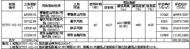 同时根据规划控制条件,HT07-02-01地块建设停车位2063个,建筑限高50米(局部80米),限高80米建筑占地面积不超过总建筑占地面积的10%。该项目自持比例90%(该宗地中商务金融用地为非自持,剩余零售商业混合餐饮混合娱乐用地均为全自持)。