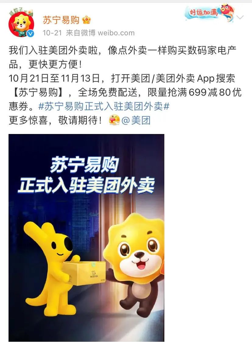 20.苏宁易购正式入驻美团外卖,明年计划入驻门店超1000家