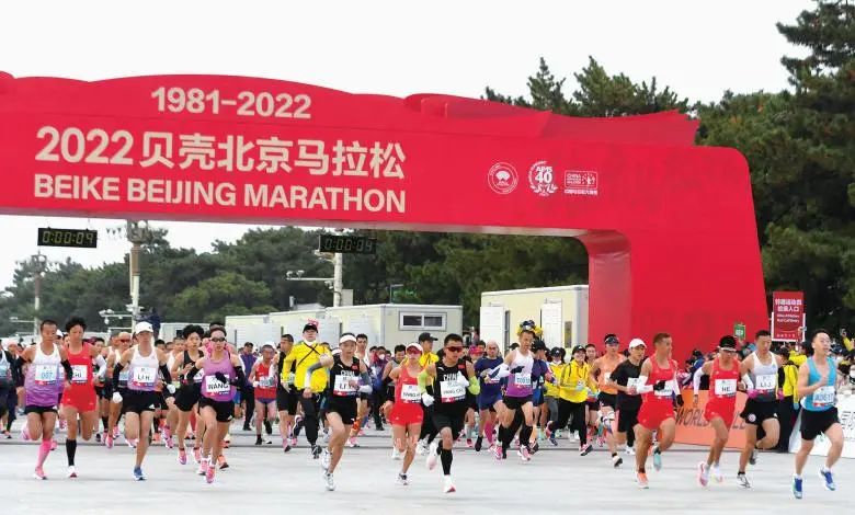 2022北京马拉松赛在北京天安门广场开跑,图源:新华社记者 张晨霖 摄