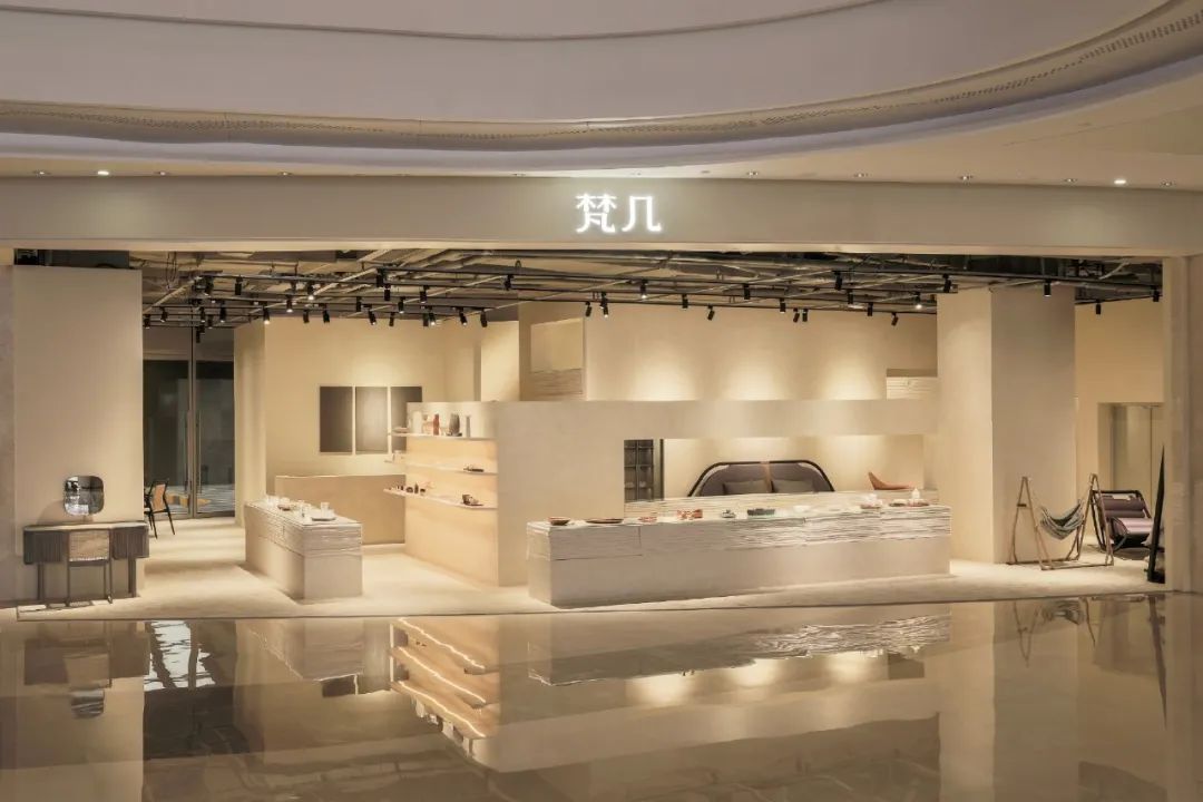 梵几FNJI是由设计师高古奇创立于2010年的独立家居设计品牌,设计灵感来源于对中国文化与传统生活的感知,将东方韵味与哲思凝练于设计中。在门店及品牌设计中,梵几在侘寂美学的基础上,加入极简主义元素,将现代设计审美融入其中。实体门店主要以家具产品为主,也有品牌的买手团队在世界各地搜寻而来的符合“梵几美学”的家居选品。