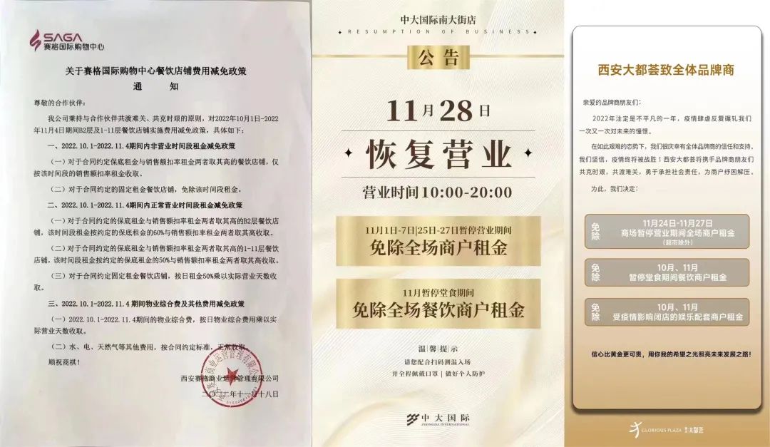 3.西安多家商场为商户减免租金