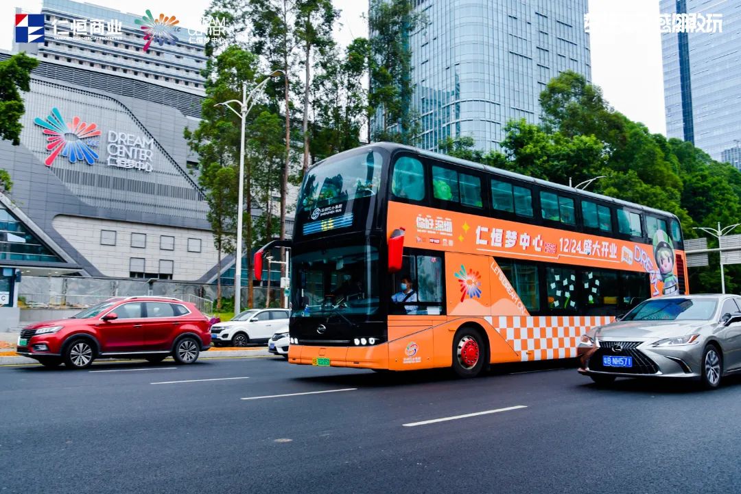感恩节当天,这辆高颜值的定制“橙色大玩具”——双层DREAM BUS从仁恒梦中心出发,穿梭于大运中心、龙城公园、甘坑小镇、世界之窗等城市地标,为年轻人提供打卡出片的限时场景,并同步派发“开业邀请函”将仪式感拉满。