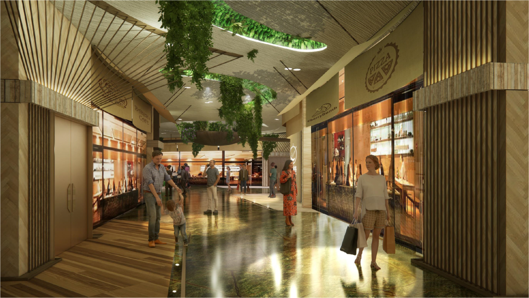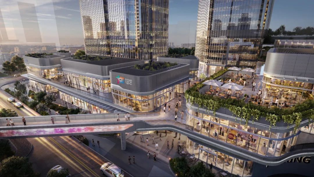 利用所处片区“生态科技产业城”及比邻大窝岭山的地理位置优势,仁恒梦中心围绕“无界森林”的建筑设计概念,以mall+街区的建筑形态,规划出生态绿谷、阳光露台、绿色街区等特色空间,模糊室内与室外空间的边界,将商业环境与自然氛围巧妙融合。