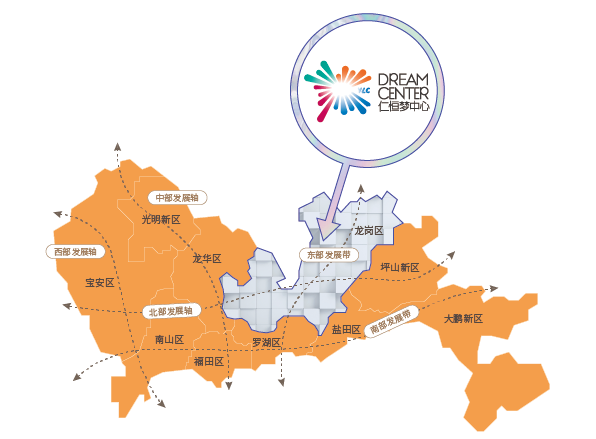 从外部环境来看,仁恒梦中心地处快速崛起的深圳东部中心“龙岗区”,片区聚集超400万㎡产业园区,吸附超50万产业人群。同时,作为深圳东部的教育高地,项目周边更是集聚了香港中文大学、北理莫斯科大学等多所国际学府和高等院校。但是,龙岗片区商业体目前仍以家庭客定位为主,仁恒梦中心的出现,将适时填补区域新型商业的缺口,为周边高质量消费客群创造一座突破传统商业社交障碍的“无界梦想之城”。