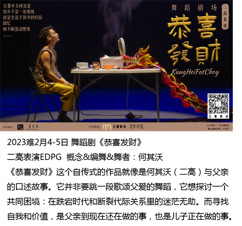 广州云幕剧场是展现、孵化广州在地艺术的平台。比如本次开幕季特别演出《恭喜发财》就是扎根广州十年的本土舞团二高表演EDPG的作品,这些有着广州本土文化的作品对呈现广州文化和推动相关产业都有着重要意义,而广州云幕剧场不仅为广州本土文化提供了一个展示和发声的平台,也在文化与艺术的交融中创新,实现更精彩的表达。