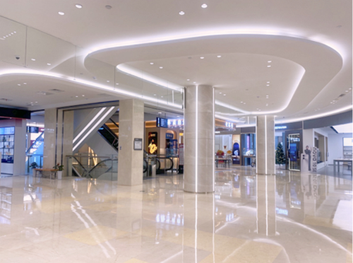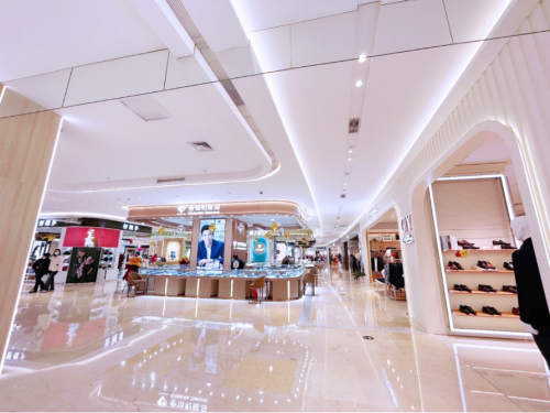 传统百货当年在设计内装时,注重顶部石膏造型的凹凸有致,灯饰的选择上也是以多为美,然而时过境迁,今天的审美则更注重简洁大气。此次的调整,宣城八佰伴打破以往的风格,用简单的线条灯清晰勾勒整个楼层的主动线。