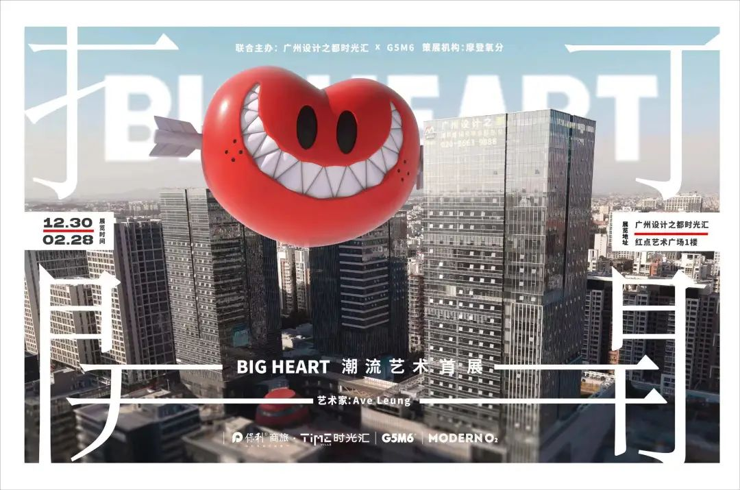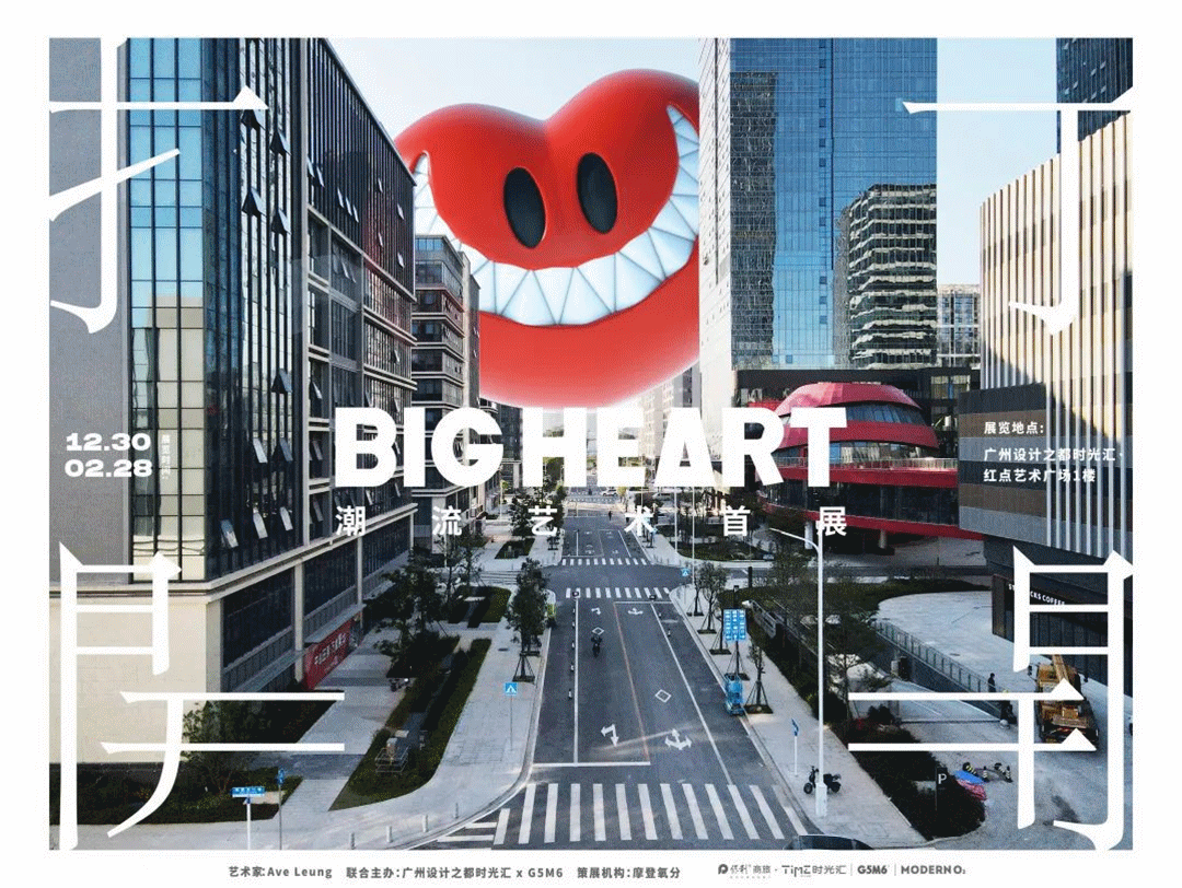 本次广州设计之都时光汇联合G5M6主办,由摩登氧分艺术机构策展,与艺术家Ave Leung(梁洪玮) 合作带来艺术IP “打开——BIG HEART 潮流艺术全国首展”,激发消费者的好奇心与探索欲。