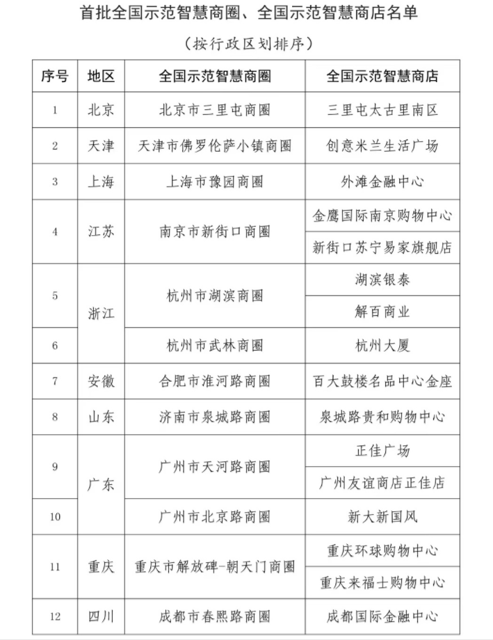 商务部公布首批全国示范智慧商圈及全国示范智慧商店,这12大商圈、16个商场上榜!